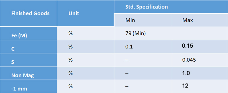 PROPERTIES OF OUR SPONGE IRON (A GRADE, SIZE 0-20MM)